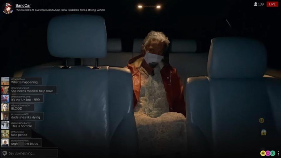Once in London, she wastes no time alienating her friend Stretch (Amer Chadha-Patel – amiable), insulting his girlfriend and stealing his car. After making herself a nuisance at an eatery, she picks up a strange passenger for cash and thus launches her strange, gross, bloody night – all captured on her livestream.